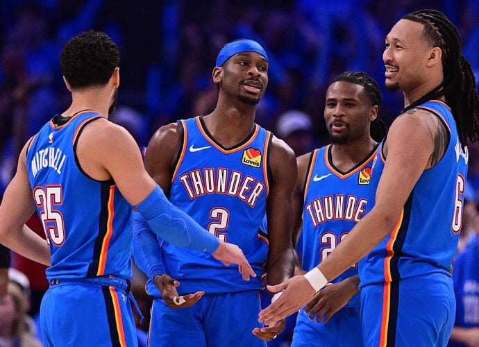 „Thunder” vedlys Shai'us Gilgeousas-Alexanderis ir toliau dažnai lankosi baudų metimo linijoje – per 29 minutes surinko 25 taškus (5/14 dvit., 0/4 trit., 15/17 baud.), 4 atkovotus kamuolius, 7 rezultatyvius perdavimus ir 2 blokus.