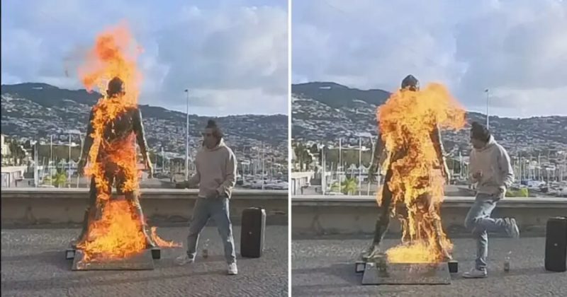 Vietos gyventojas nusprendė atkreipti į save dėmesį itin radikaliu būdu – apipylęs degiu skysčiu legendinio futbolininko bronzinę skulptūrą, ją padegė. Po šio išpuolio piktadarys savo socialinio tinklo paskyroje paliko keistą žinutę, teigdamas, jog tai esąs „paskutinis Aukščiausiojo perspėjimas”.