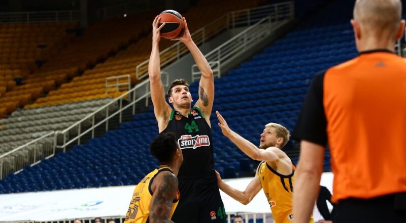 Eurolygos 21-ojo turo rungtynėse dar vieną pralaimėjimą patyrė Maskvos srities „Chimki“ (2-19) ekipa, kuri išvykos rungtynėse 78:94 (20:23, 13:23, 18:24, 27:27) nusileido Konstantinos Mitoglou vedamai „Panathinaikos“ (7-13) komandai.