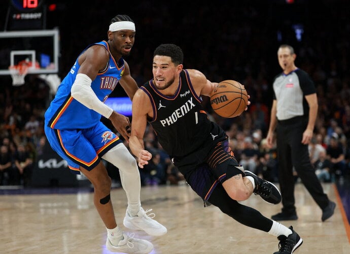 „Suns”: Jordanas Goodwinas 26 (8/13 trit.), Devinas Bookeris 24 (1/4 trit., 9 rez. per.), Dillonas Brooksas 22, Ryanas Dunnas 9 (8 atk. kam.).
