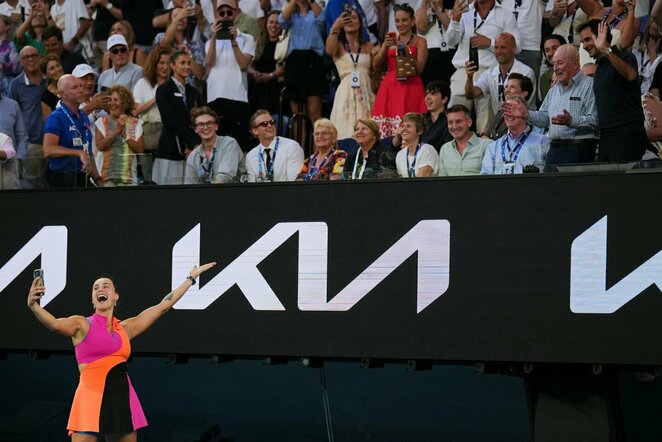 „Esu milžiniška gerbėja, – po mačo šypsojosi Sabalenka. – Viso susitikimo metu sau kartojau: nežiūrėk į tą pusę, tik nežiūrėk. Tai neįtikėtina – niekada nesitikėjau, kad Federeris ir Laveris stebės mano mačą iš pirmosios eilės.”